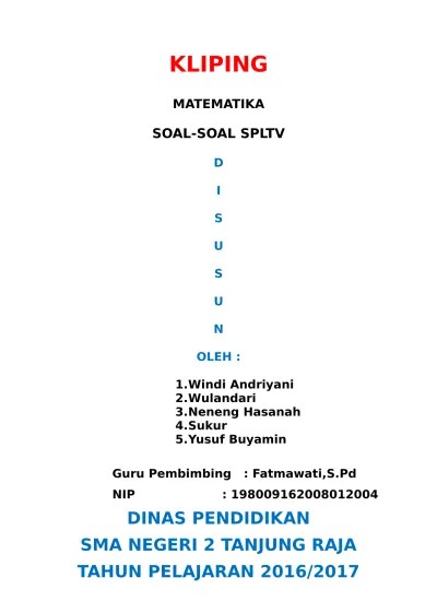 Nov 20, 2021 · contoh keliping matematika / contoh keliping matematika : Unduh sebagai doc, pdf, txt atau baca online dari scribd. Feb 15, 2022 · berikut contoh kata pengantar kliping ips, seni budaya, olahraga (penjaskes), pkn, ipa, dan sejarah. 50% (2) 50% menganggap dokumen ini bermanfaat (2 suara) Log in with facebook log in with google.